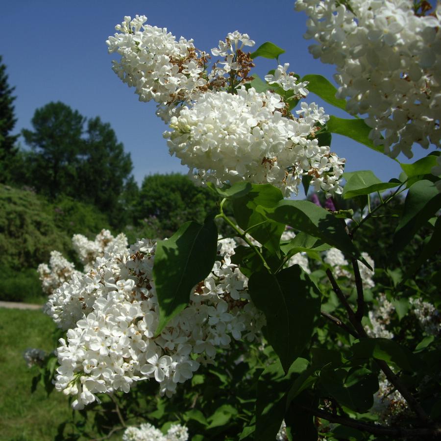 соцветия крупные, состоят из 2-3 пар плотных широкопирамидальных метелок. Кусты невысокие, аккуратные, широкие, хорошо облиственны. Во время обильного цветения куст — огромный белоснежный ароматный букет. Сорт очень эффектен в небольших садах.