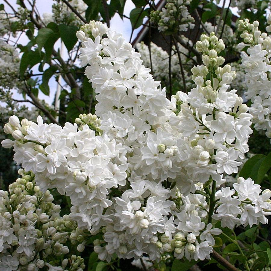 Высота 3-3.5 м. Крупные кремовые бутоны с чисто белыми большими, душистыми, махровыми цветками. Цветёт в поздние сроки. Красивый старинный сорт с белыми махровыми цветками.