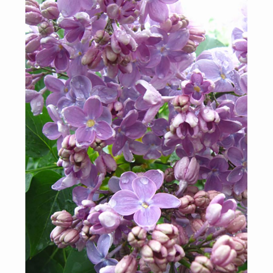 Сорт компактный, до 2 метров в высоту и 1,7 – в ширину. Соцветия средней величины, немного поникающие. Бутоны очень нежного, серебристо-розового оттенка, иногда слегка зеленоватые. Цветки простые, но очень крупные, до 3,3 сантиметров, с чуть загнутыми кончиками лепестков. Основной цвет – бледно-розовый с жемчужным отливом. Однако за время цветения лепестки выгорают до светло-лиловых с голубоватым оттенком. Цветение продолжительное, наступает ближе к концу мая, цветы очень ароматные.