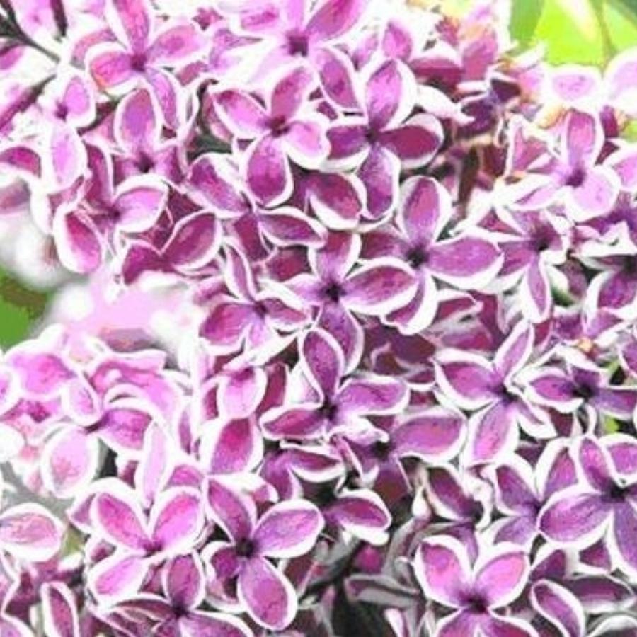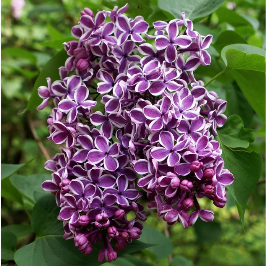 Цветы пурпурно-красные, с серебристо-белой широкой каймой по краям, крупные 2,2 см в диаметре, простые, слегка душистые. Лепестки широкие, выпукло-вогнутые. Соцветия из 1-2 пар узкопирамидальных метелок (18Х8см) средней плотности с выступающими отверстиями.Листья темно-зеленые. Кусты сильнорослые. Цветет умерено, в поздние сроки. Применяется для выгонки. Очень оригинальный сорт благодаря белому окаймлению на лепестках цветов.