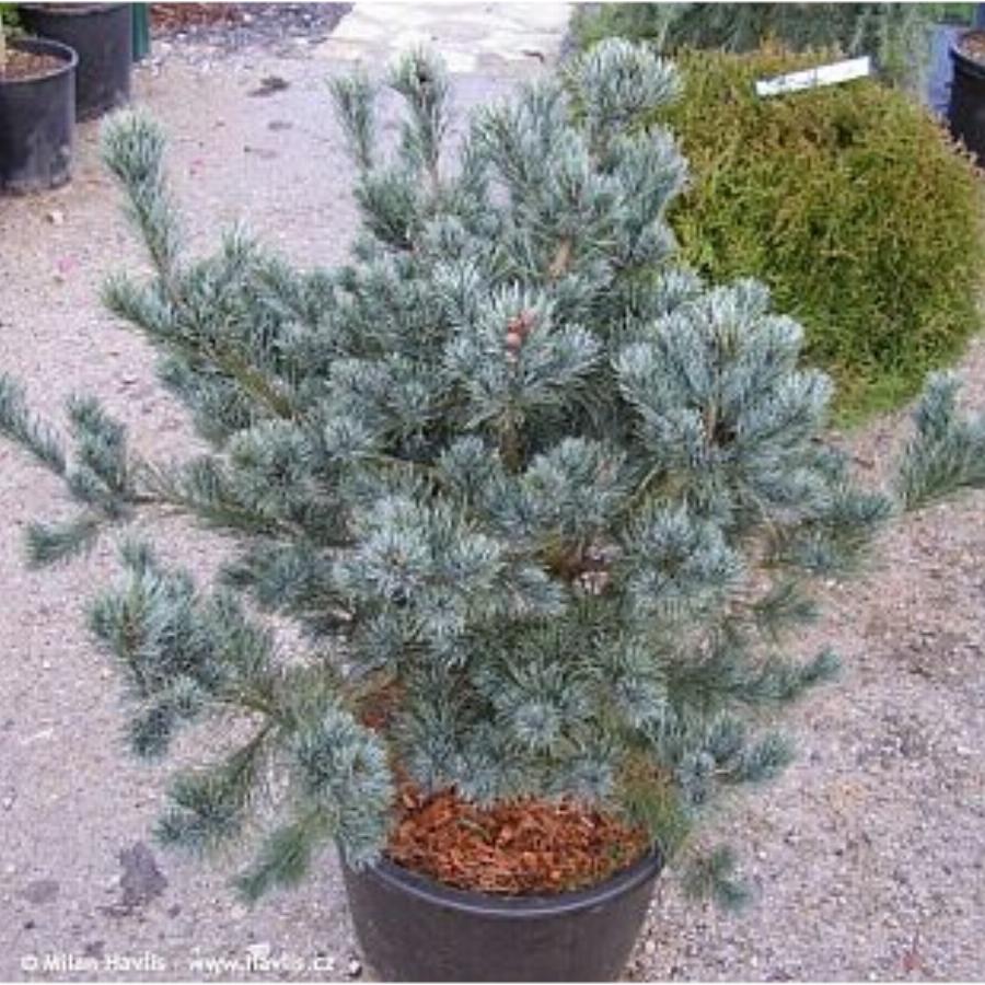 Высота 4-6м, диаметр кроны 3-5м. Растет быстро. Компактный кустарник. Крона ширококоническая, плотная. Хвоя игольчатая, яркая, голубовато-зеленая. Место: Солнце. Предпочитает рыхлые, свежие суглинки и супеси богатые органикой, известковые почвы. Не переносит засуху.