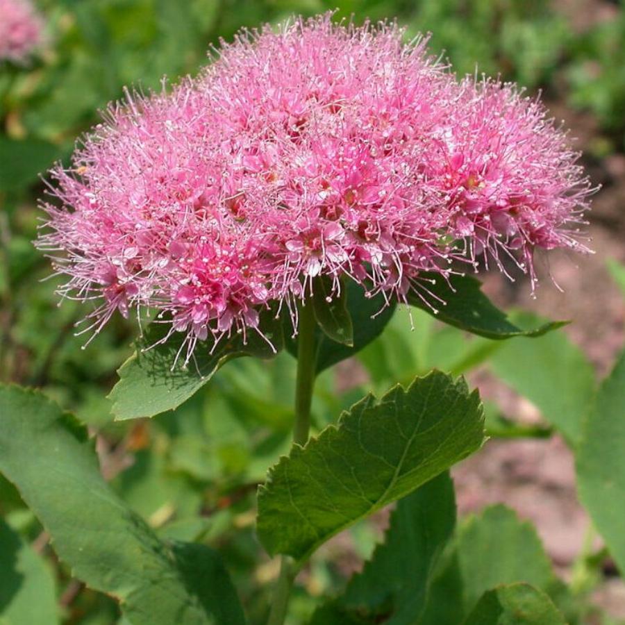 Густой полукруглый кустарник около 0,8 м выс. Листья зелёные, красиво окрашивающиеся осенью. Цветы розовые, собранные в плоские соцветия на концах побегов текущего года, VI-VII. Морозоустойчивый, выносливый, неприхотливый вид, идеальный для низких живых изгородей и рабаток.
