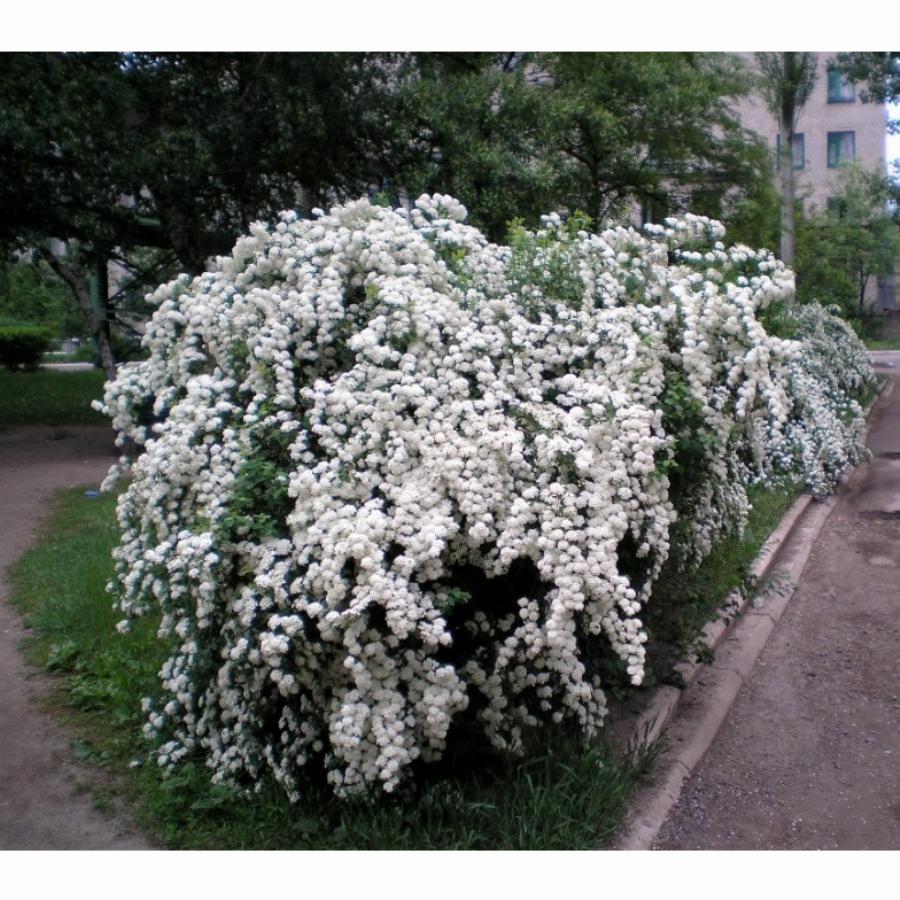 Красивоцветущий компактный кустарник до 1,5 м высотой, с очень густой, округлой кроной диаметром до 2 м, и изящно изогнутыми ветвями. Листья темно-зеленые, сохраняющие окраску до поздней осени. Обильно цветет в конце мая – начале июня, многочисленными белыми цветками, до 7 см диаметром, полностью покрывающими побеги по всей длине. Зимостойка, в суровые зимы может подмерзать, но быстро восстанавливается. Светолюбива, переносит легкое затенение. Предпочитает любые влажные, плодородные почвы. Устойчива в городских условиях. Рекомендуется для одиночных и групповых посадок, для создания живых изгородей.