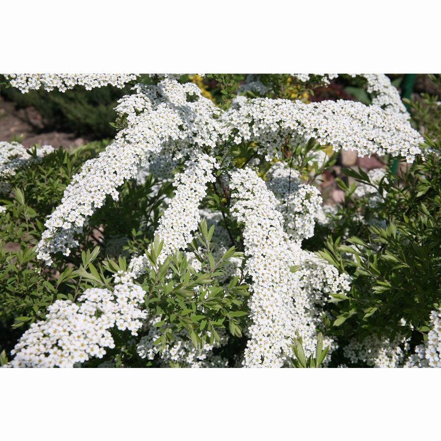 Кустарник. Высота и диаметр 1,5-2 м. Крона раскидистая, широкая. Белоснежные цветки расположены по всему побегу. Растет медленно. Одна из самых эффектных спирей весеннего срока цветения. . Растет быстро, устойчива в условиях города. Местоположение: Солнце. Почва свежая, садовая.
