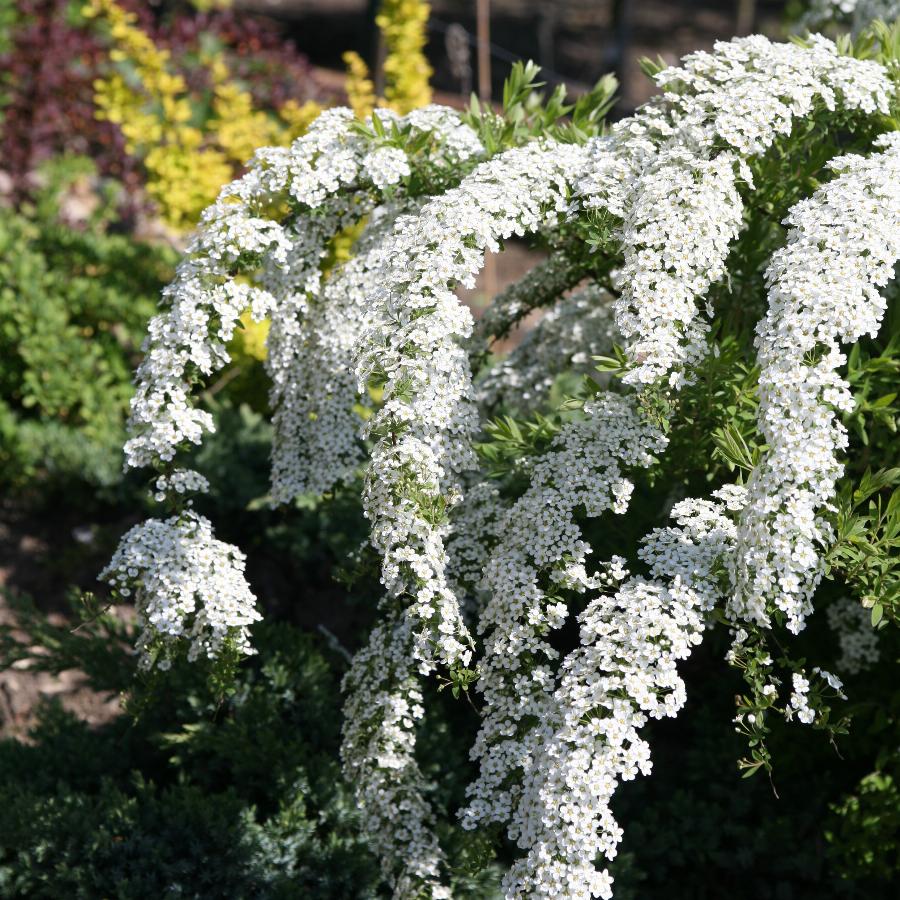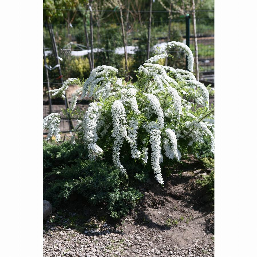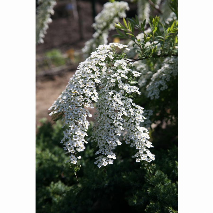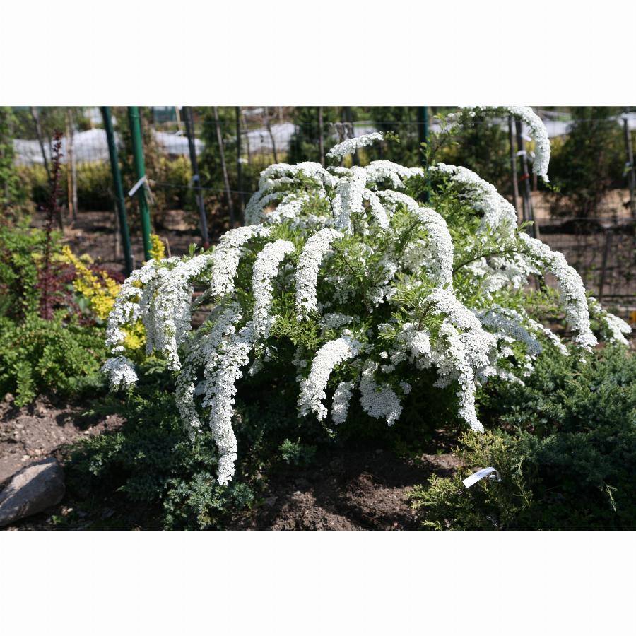 Кустарник. Высота и диаметр 1,5-2 м. Крона раскидистая, широкая. Белоснежные цветки расположены по всему побегу. Растет медленно. Одна из самых эффектных спирей весеннего срока цветения. . Растет быстро, устойчива в условиях города. Местоположение: Солнце. Почва свежая, садовая.
