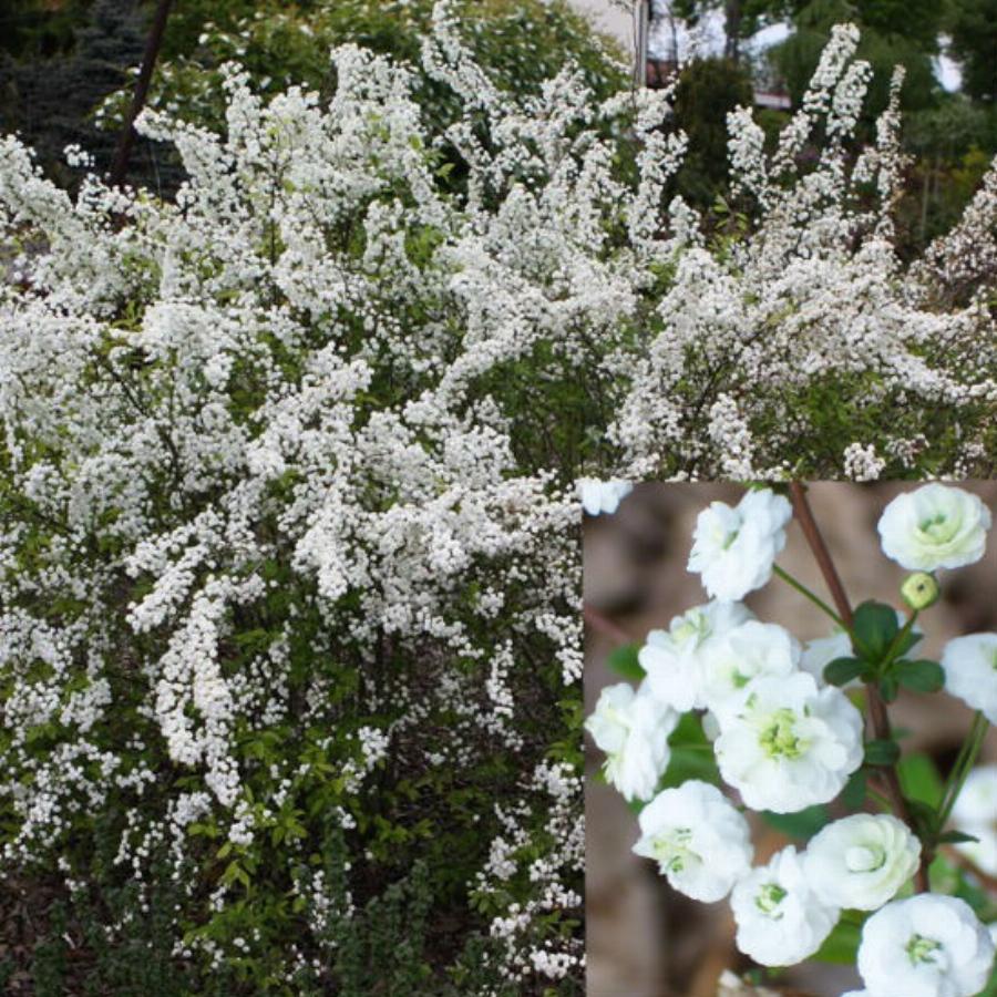 Кустарник до 2 м высотой, с тонкими, прутьевидными ветвями. Листья у нее ярко-зеленые, эллиптические, по краю мелкопильчатые. Осенью они приобретают желто-оранжево-коричневые тона. Цветет не ежегодно, в мае—июне белыми махровыми до 1 см в диаметре цветками, собранными в зонтичные соцветия. Необходимо защищенное от северных ветров место и укрытие на зиму молодых растений. В низкой минусовой температуре обмерзают не только молодые, но и старые побеги. На зиму рекомендуется укрывать корневую систему сухой листвой, а весь куст обертывать крафт-бумагой.