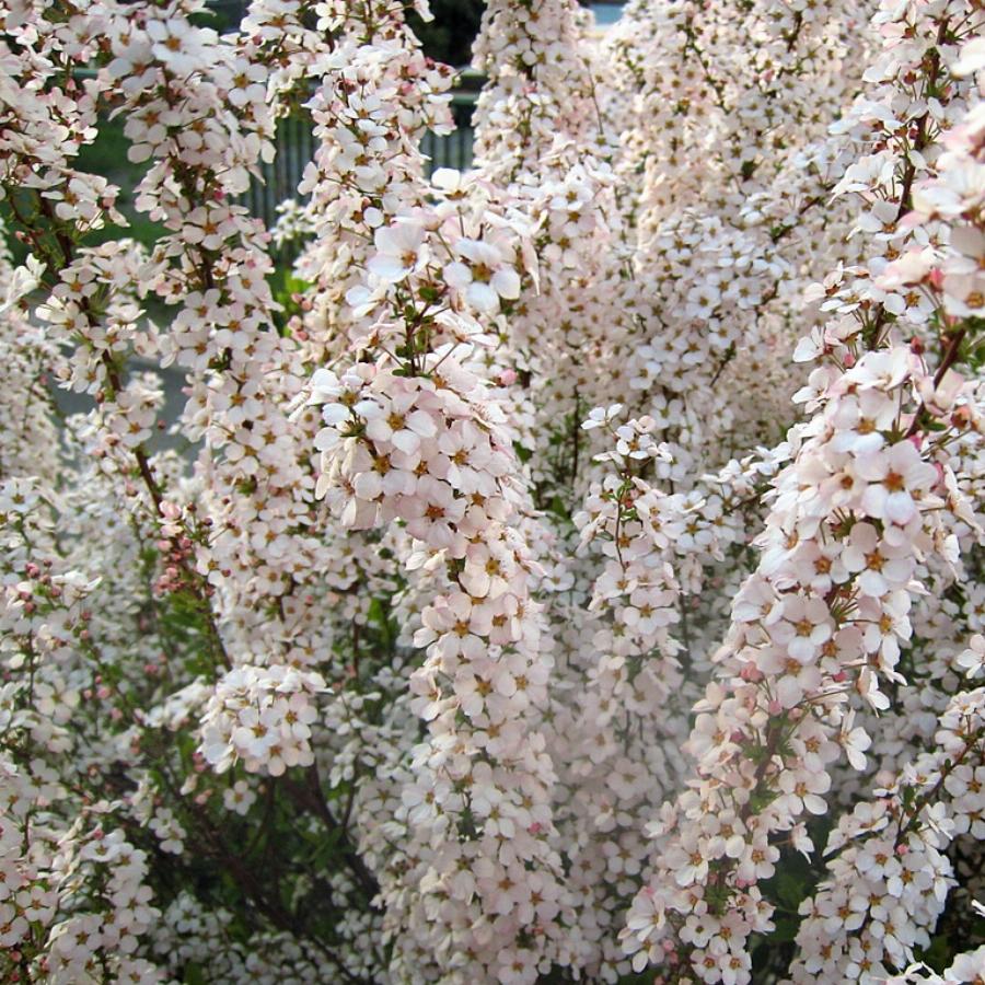Обильно цветущий, первый по времени цветения кустарник. Невысокий многоствольный кустарник, достигающий в природе высоты 1,5 м. Листья зеленые летом и оранжевые осенью. Соцветия — состоят из бело-розовых,»яблочных» цветков, появляющихся во второй-третьей декаде мая. Заканчивается цветение в середине июня .Хорошо переносит засуху, предпочитает солнечные места посадки. Морозостоек в средней полосе. Рекомендуется для японских садиков, альпинариев. Успешно культивируется в Европе, Северной Америке. Ценится за необычную для спирей форму куста, раннее обильное цветение, оригинальную листву.