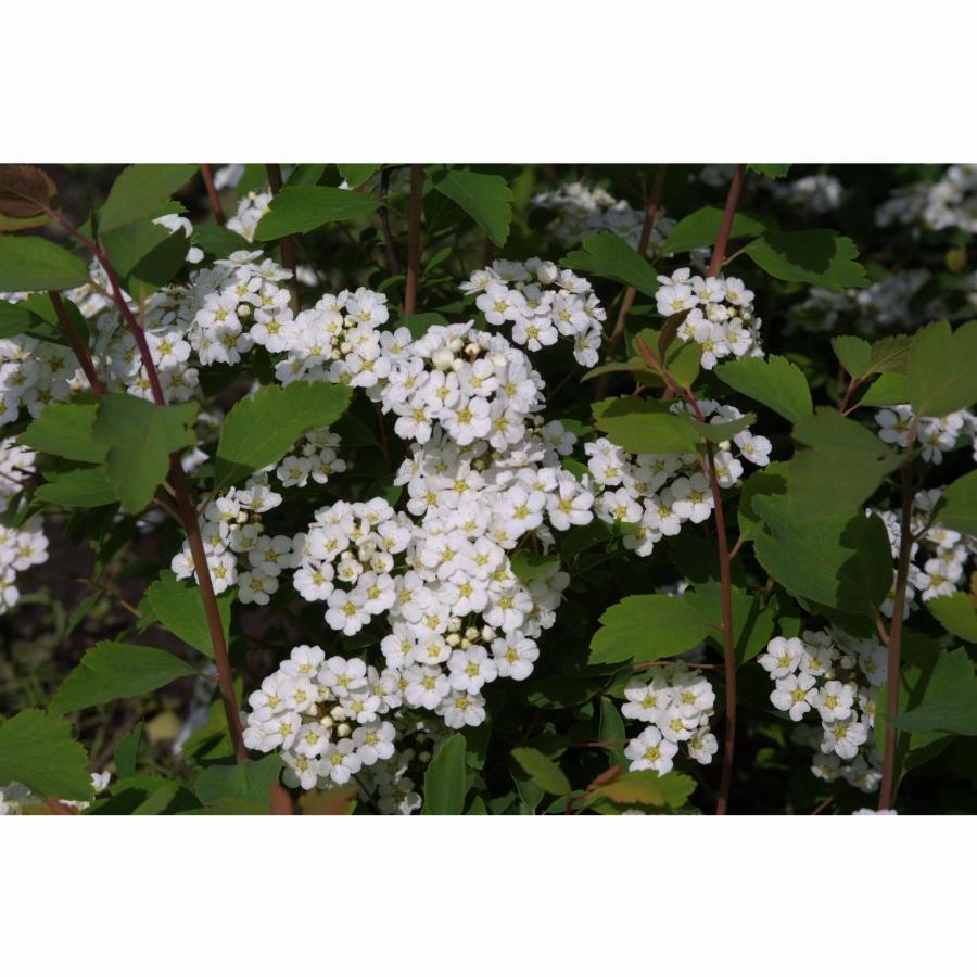 Кустарник. Высота и диаметр кроны 2-3 м. Крона раскидистая, с дугообразно свисающими ветвями. Период цветения май-июнь. Цветки белые, собраны в густые, зонтикообразные соцветия. Листья зеленые. Местоположение: Солнце, полутень. Почва свежая, плодородная, хорошо дренированная. Выносит известкование.