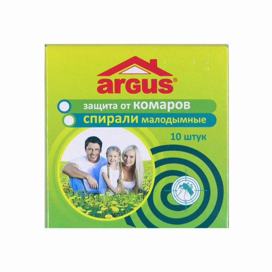 Спирали малодымные от комаров ARGUS предназначены для уничтожения комаров и других летающих насекомых (мошки, мокрецы, москиты) на открытом воздухе (сад, приусадебный участок, беседка, открытая терраса, веранда) в присутствии взрослых людей, а так же в закрытых помещениях в отсутствии людей.Тление спирали сопровождается выделением незначительного количества дыма. Резерв спирали весом в 13г — 7 часов. Гибель комаров в помещении начинается через 1-2 минуты и достигает 100% через 10-15 минут.