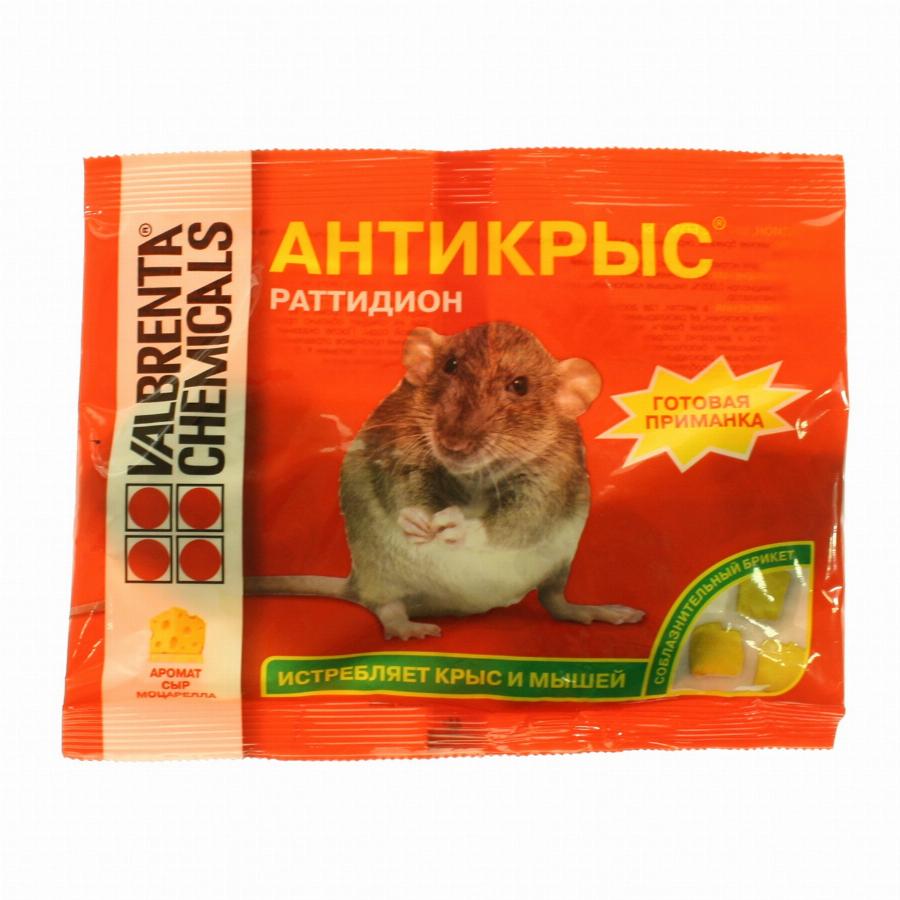 Раттидион — мягкие брикеты, окрашенные в желтый цвет, в индивидуальной упаковке, для истребления крыс и мышей. Масса-100г.
