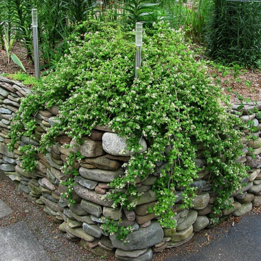 Листопадный карликовый кустарник с ажурной кроной, листья морщинистые, цветки мелкие, невзрачные. Ветки, лежащие на земле, легко укореняются. высота 0,5-0,8 м, диаметр кроны 150 см. Цветение — июнь. Зона 4 (-34 / -29 °C).