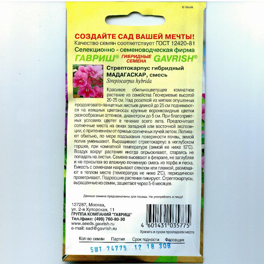 СТРЕПТОКАРПУС МАДАГАСКАР 5 ШТ гавриш