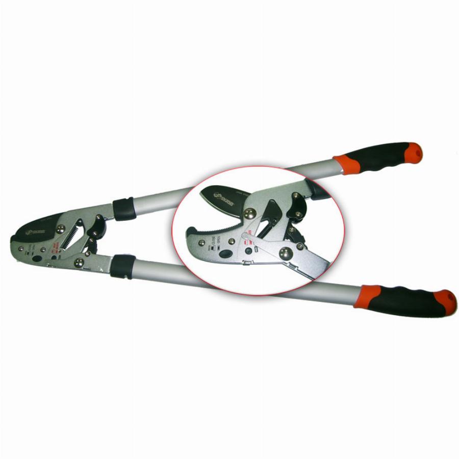 650 мм, силовой, двухрычажный, с трещеточным механизмом. Предназначен для обрезки сучьев диаметром до 38 мм, обеспечивает легкий срез удаленных веток. Закаленные лезвия изготовлены из высокоуглеродистой стали SK5, имеют продолжительный срок службы и защиту от коррозии, легко очищаются. Покрытая медью регулируемая упорная пластина и храповый механизм обеспечивают легкость реза. Прочные ручки снабжены эргономичными мягкими рукоятками. Сделано в Тайване.