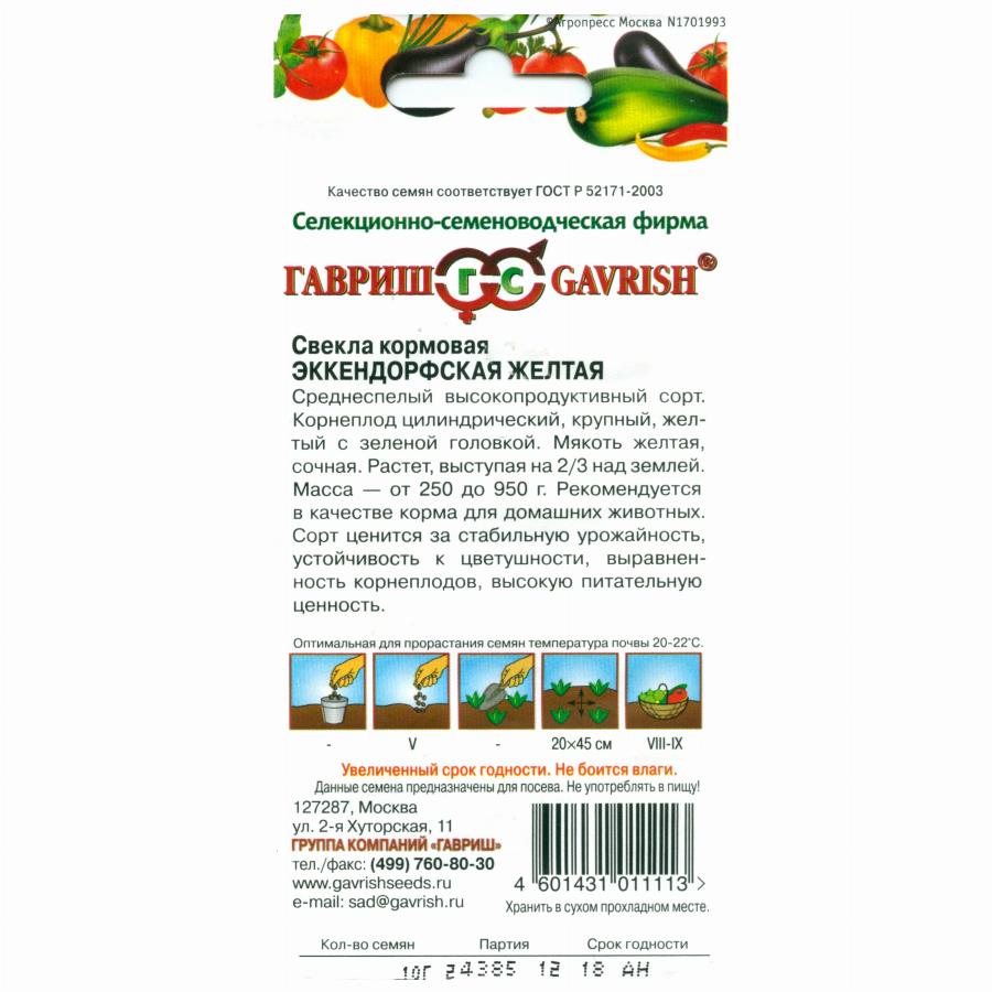 СВЕКЛА КОРМОВАЯ ЭККЕНДОРФСКАЯ ЖЕЛТАЯ 10 Г гавриш