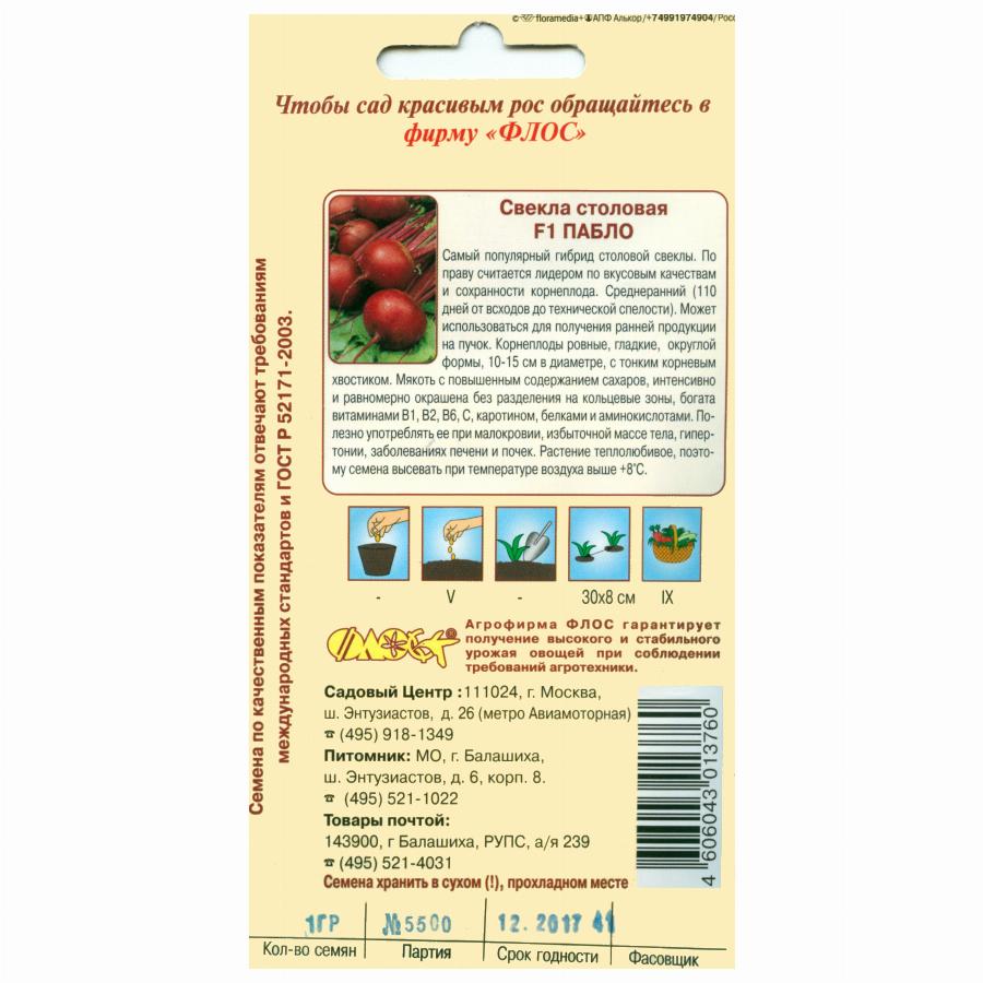 СВЕКЛА СТОЛОВАЯ ПАБЛО F1 1,0 Г флос