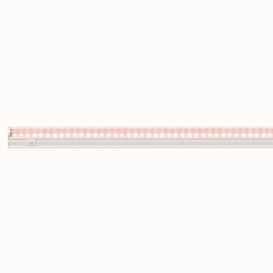 ULI-P13-24W/SPLE IP40 WHITE. Розовое свечение спектра SPLE повторяет спектр требующийся растениям для фотосинтеза и служит для освещения и досветки декоративных растений, ароматных трав, рассады. Мощность светильника составляет 24 Вт, площадь освещения 1,1-2 м2. Корпус светильника изготовлен из алюминия, окрашенного в белый цвет. Рассеиватель из прозрачного полимерного материала. Выключатель расположен на корпусе. Степень пылевлагозащиты светильника IP40. Длина кабеля питания — 1,2 метра. Класс энергопотребления А+. Простой накладной монтаж. Предусмотрена возможность последовательного соединения до 5 светильников. В комплект поставки входят крепежные изделия и переходники для подключения дополнительных светильников. Габариты картонной упаковки ДхШхВ — 1000х38х26 мм, длина светильника 872 мм.