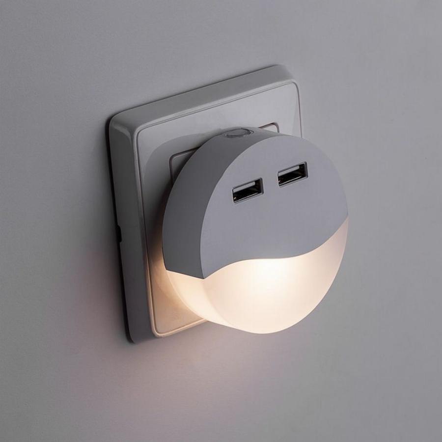 Светильник-ночник c USB выходами 0,45W 230V круг, белый FN1122