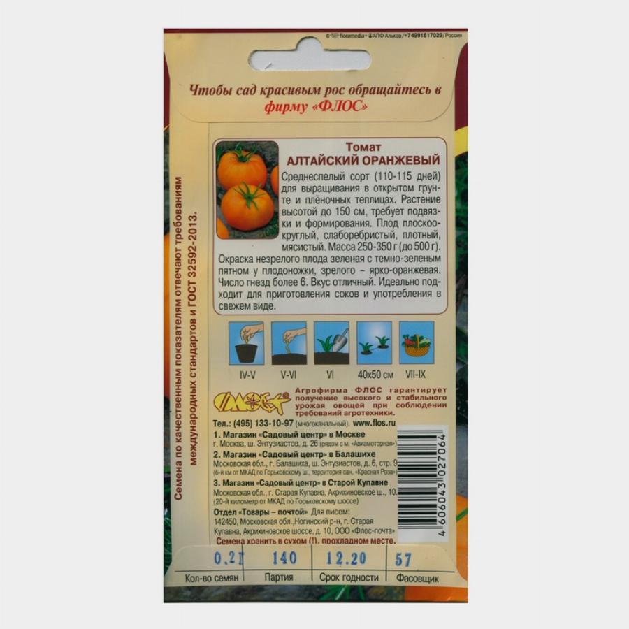 ТОМАТ АЛТАЙСКИЙ ОРАНЖЕВЫЙ 0,2 Г флос
