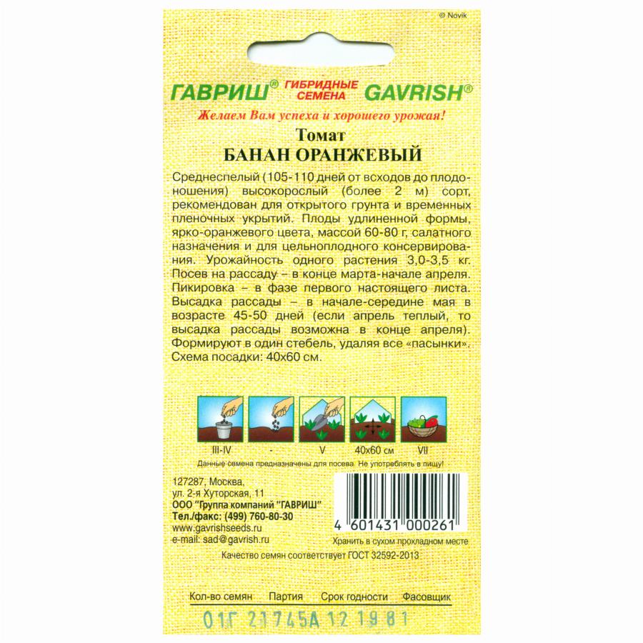 ТОМАТ БАНАН ОРАНЖЕВЫЙ 12 ШТ гавриш