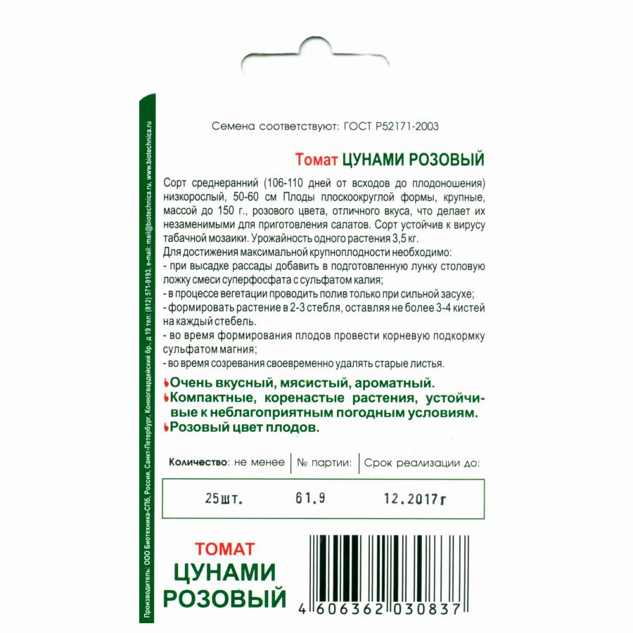 ТОМАТ ЦУНАМИ РОЗОВЫЙ 25 ШТ биотехника
