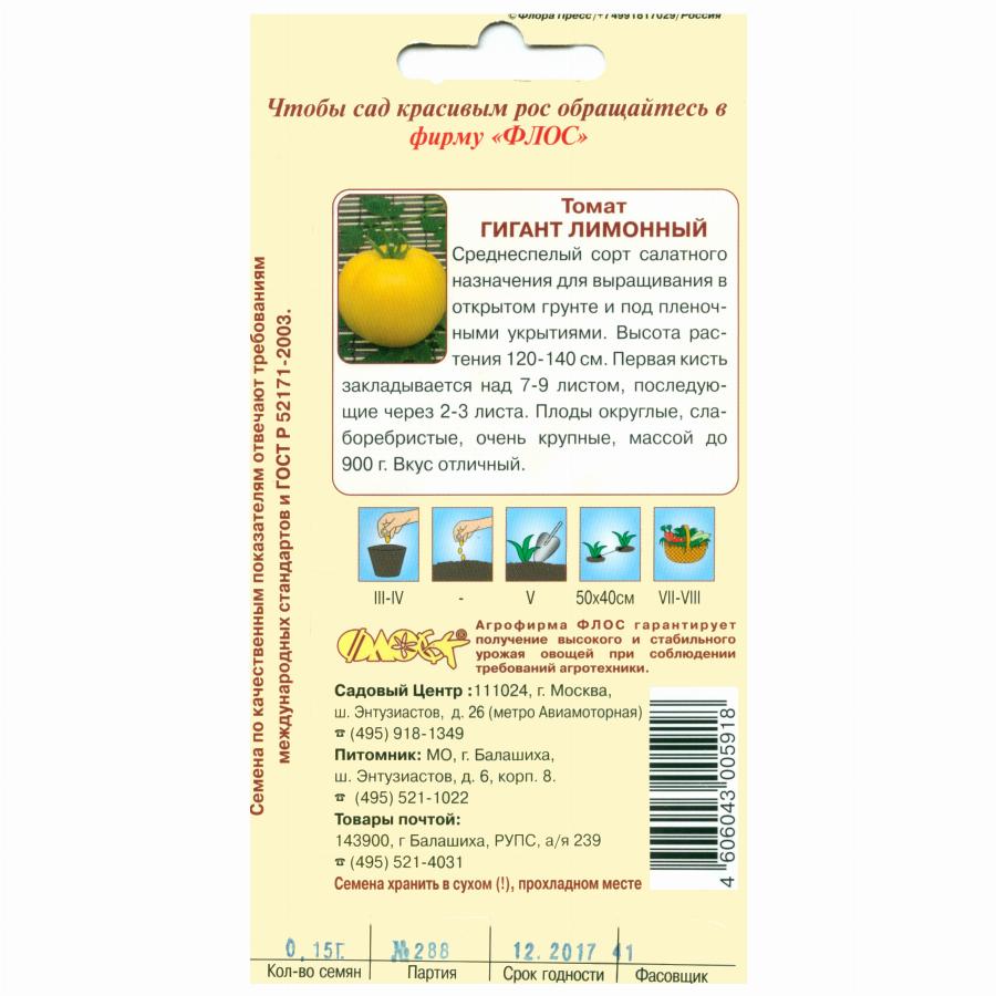 ТОМАТ ГИГАНТ ЛИМОННЫЙ 0,15 Г флос