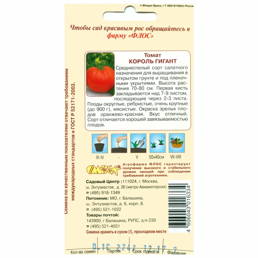 ТОМАТ КОРОЛЬ ГИГАНТ 0,1 Г флос