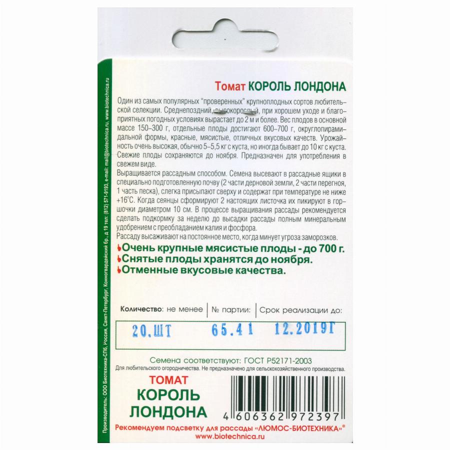 ТОМАТ КОРОЛЬ ЛОНДОНА 20 ШТ биотехника