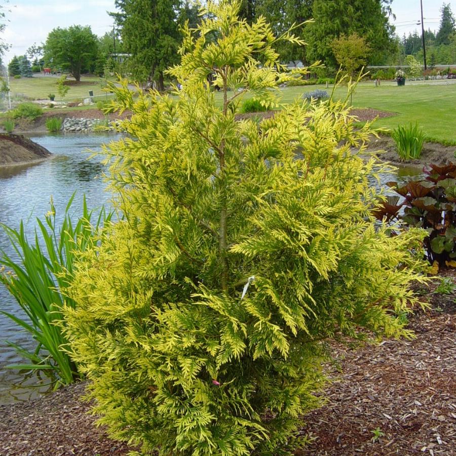 Интересная, сильнорослая форма с конической кроной. Крона в молодости рыхлая, позднее становится плотнее. В возрасте 10 лет достигает 2,5м. Веточки широкие, ярко-зеленые с золотистыми поперечными полосками. Нуждается в плодородных и влажных почвах. Теневынослива. Рекомендуется для больших садов, а также в качестве шпалерного растения.
