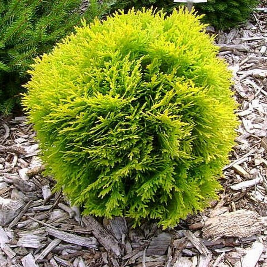 Миниатюрный, хвойный кустарник со средней скоростью роста. Высота взрослого растения от 0,5 до 0,8 м. Форма кроны молодого растения — шаровидная, взрослого — овальная, плотная. Ветки растут вверх. Хвоя ярко-желтая, осенью приобретает медный оттенок.