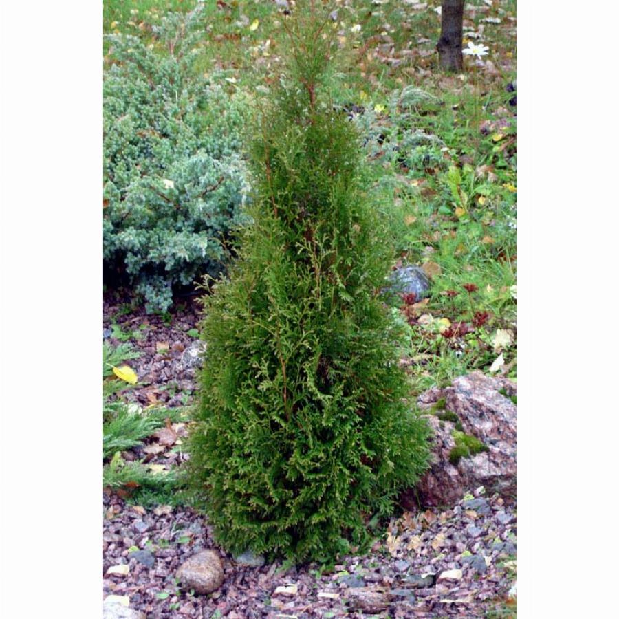 Высота до 8м. Крона кеглевидная, плотная, чешуйчатая, блестящая, зеленая. Место: Солнце-полутень. Предпочитает свежие, влажные, плодородные суглинки. Переносит сухость и переувлажнение почв.