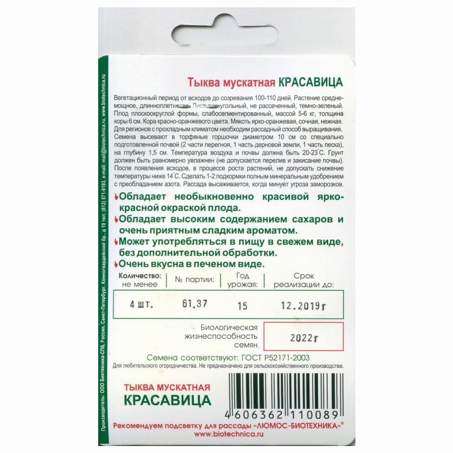 ТЫКВА МУСКАТНАЯ КРАСАВИЦА 4 ШТ биотехника