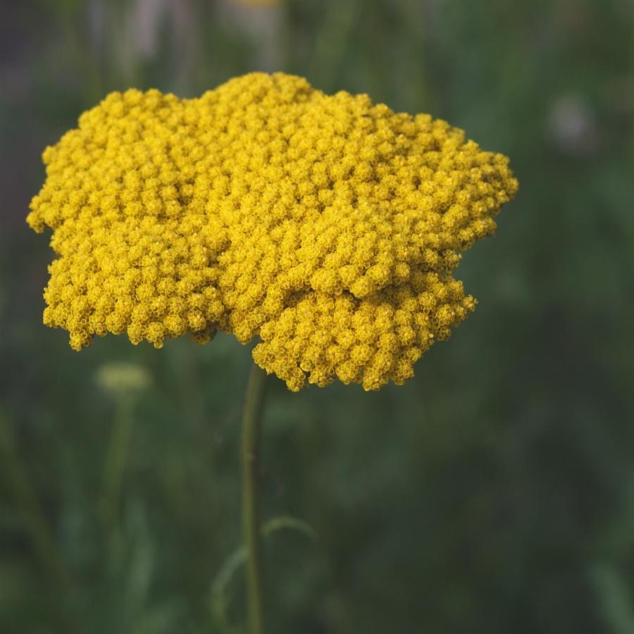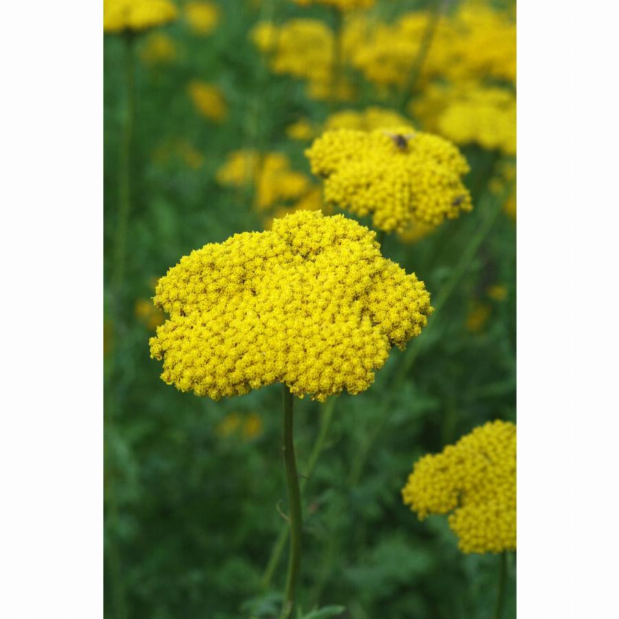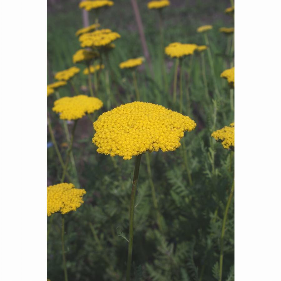 Многолетнее растение до 1,2 м высотой. Листья серовато-зеленые, ажурные, перисто-раздельные. Цветочные корзинки до 0,5 см в диаметре, собраны в плоские, плотные щитки до 13 см в поперечнике. Краевые цветки однорядные, золотисто-желтые, трубчатые — желтые. Цветет с июля 30-35 дней.