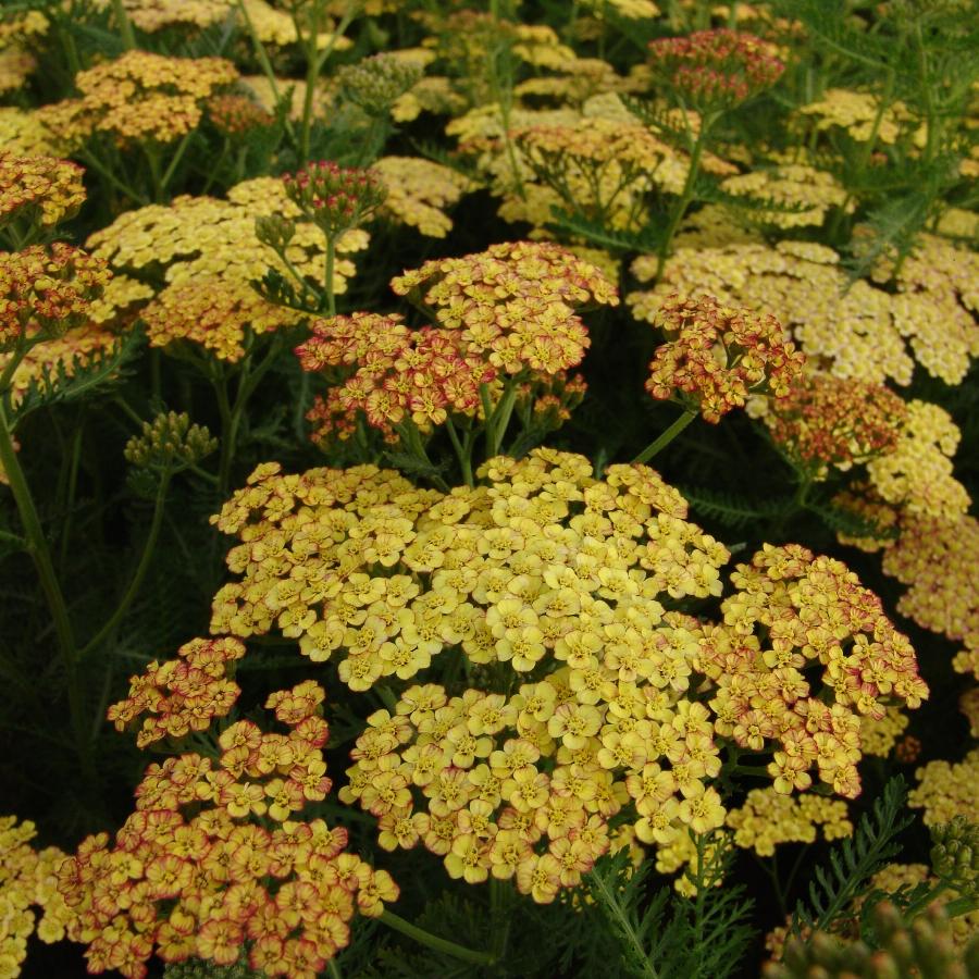Высота 70-80 см., .Корзинки до 0,7см в диаметре собраны в плотные щитковидные соцветия. Цветет с июля 40-45 дней.Цветки желто-оранжевые с красной каймой.Месторасположение: лучше растут на освещенных участках.