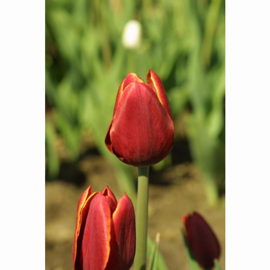 Высокорослый, с крупным классическим бокалом цветок тёмно-красного цвета относится к классу «Триумф» Тюльпан Абра – один из ранних сортов, подходящий для зимней выгонки.