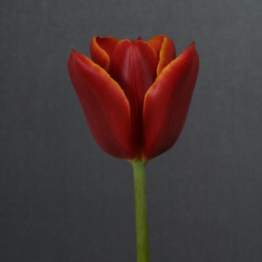 Высокорослый, с крупным классическим бокалом цветок тёмно-красного цвета относится к классу «Триумф» Тюльпан Абра – один из ранних сортов, подходящий для зимней выгонки.