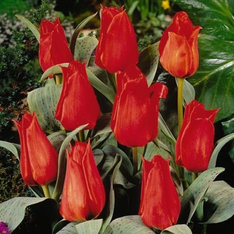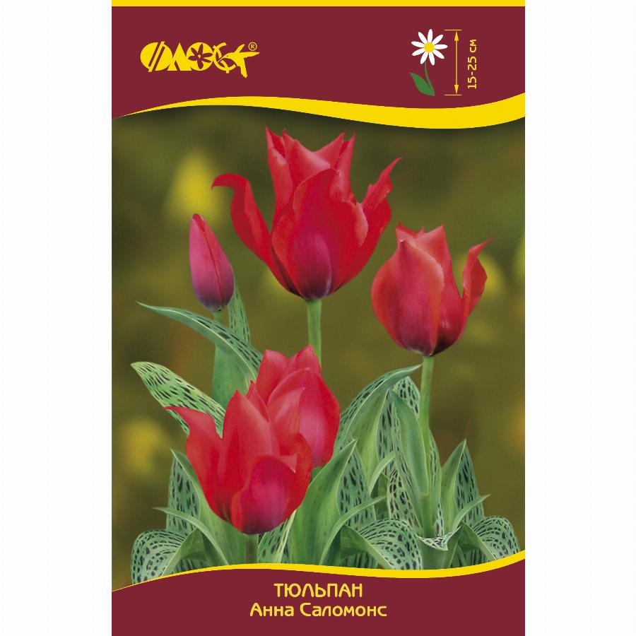 Цветок бокаловидныйярко-красный с сизым налетом; центр цветка темно-коричневый с желтым налетом. Тычиночные нити и пыльники желтые. Высота растений 25 — 30 см. Цветет с 8—15 мая в течение 10 -12 дней.