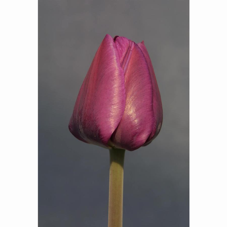 Класс: Триумф-тюльпаны (Triumph). Форма цветка бокаловидная. Цвет сиреневый с отливом, листья однотонно светло-зелёные, без штрихов и контрастного контура.