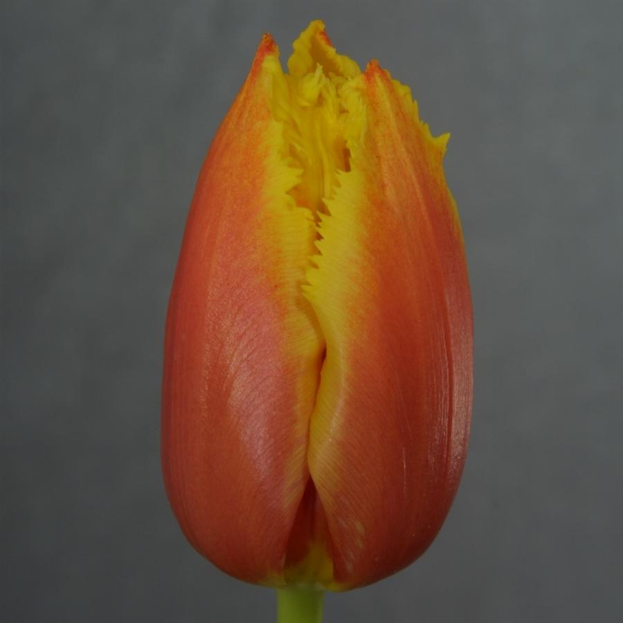 Восокий до 70 см. бахромчатый тюльпан. Ярко-красный с крупной желтой бахромой. Цветонос стройный и прочный. Супер выгонка и срезка.