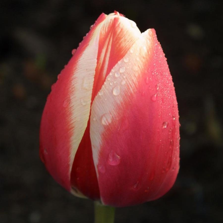 Класс 4. Дарвиновы гибриды. Цветок карминно-красный с чисто-белой каймой, огомных размеров, яйцевидной формы. Растение мощное с толстым цветоносом. Сорт Экстра-класса.