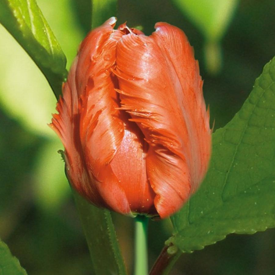 Бутоны тюльпана насыщенного красного цвета с немного темноватым оттенком с наружной стороны. Зубчики и волны, обрамляют лепестки по бокам. Перед увяданием бутоны могут полностью раскрыться. На протяжении всего цветения головка сохраняет аккуратную элегантную форму. Стебель тонкий, но прочный, в высоту может достигать до 57 сантиметров, в среднем – 49 сантиметров.