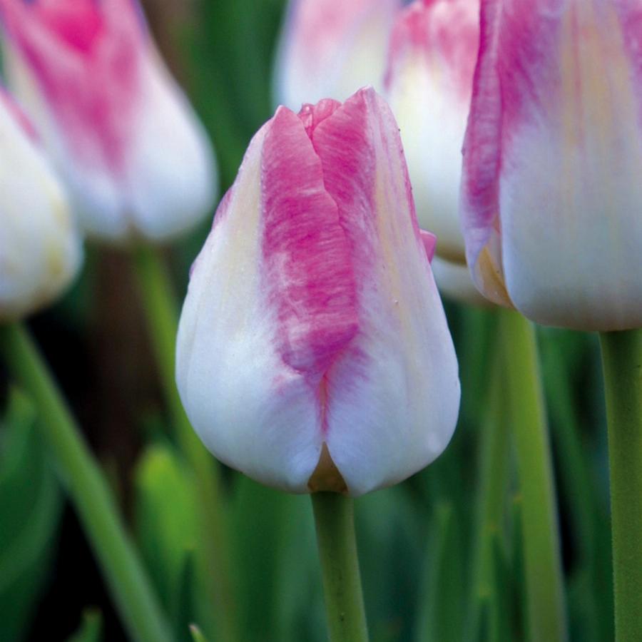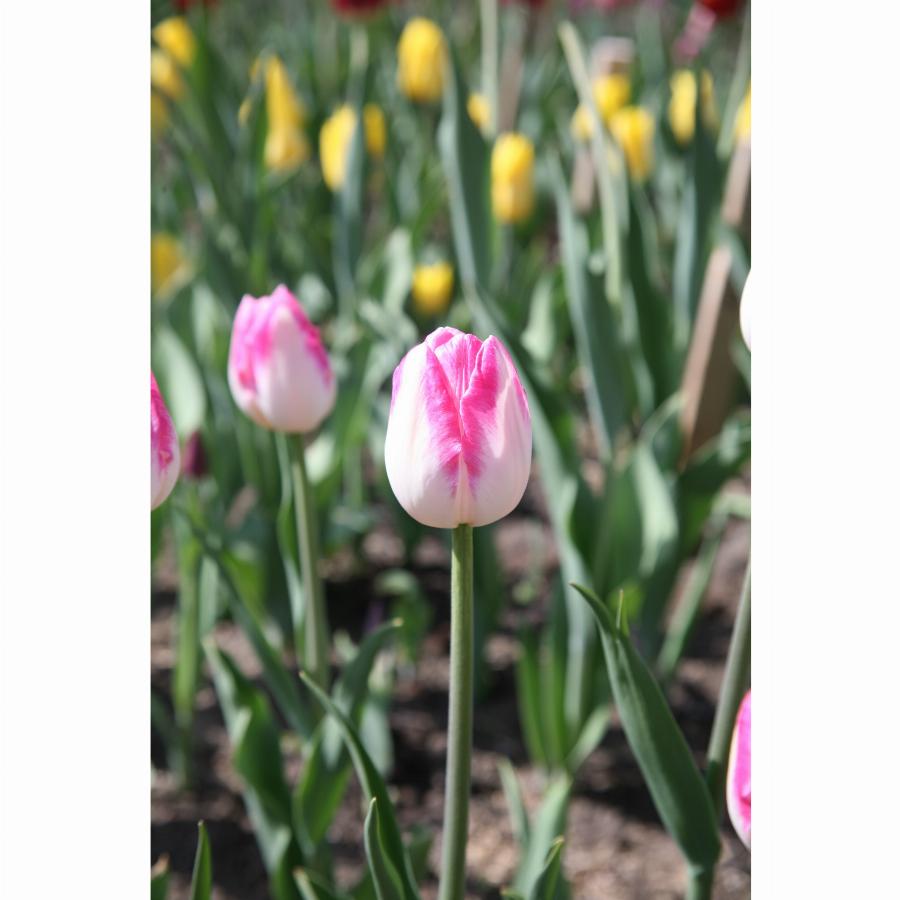 Класс 3. Триумф. Цветок бело-розовый с широкой нежно-розовой каймой, крупный, бакаловидной формы. Цветонос стройный и прочный, высотой 60-70 см. Великолепная срезка и зимняя выгонка.