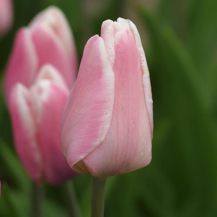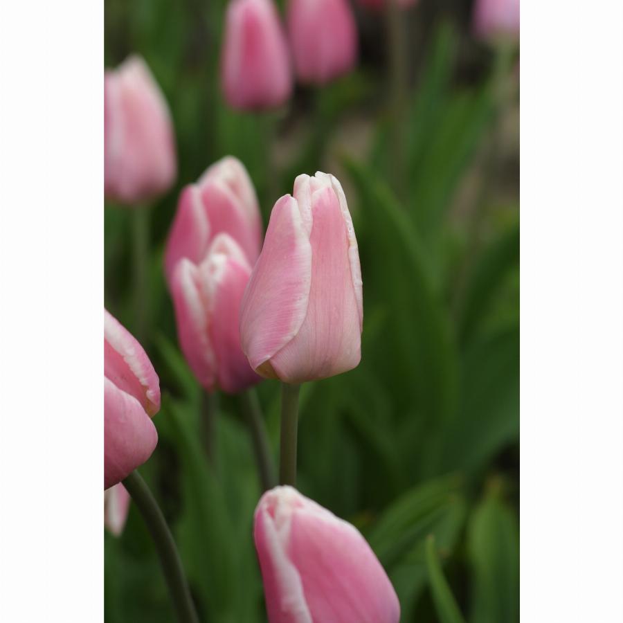 Класс 3. Триумф тюльпаны. Цветок яркий розово-красный с белой каймой, крупный. Цветонос стройный и прочный.