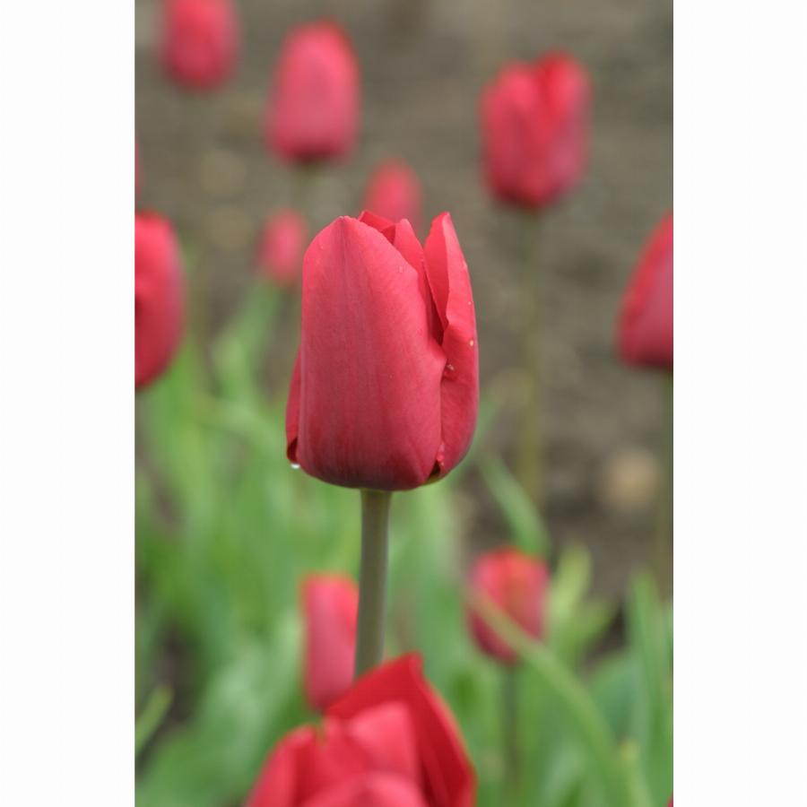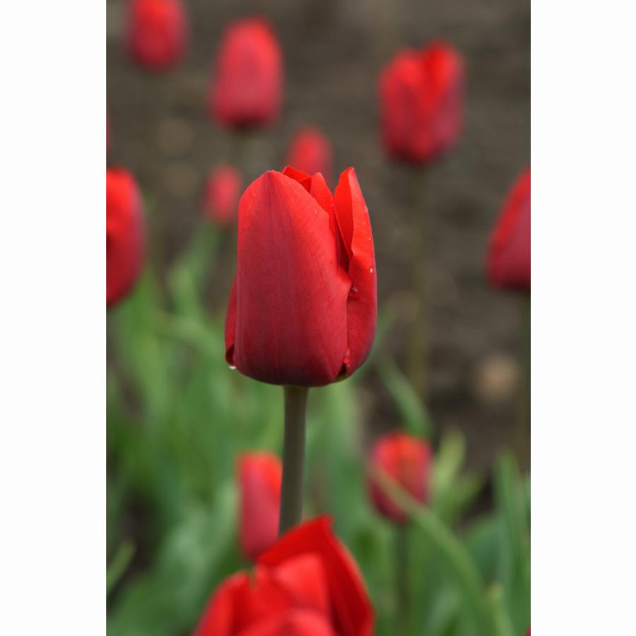 Высокий до 50 см. тюльпан. Ярко-красный выровненный бокал. В роспуске чисто-красный, оригинален своей простотой.
