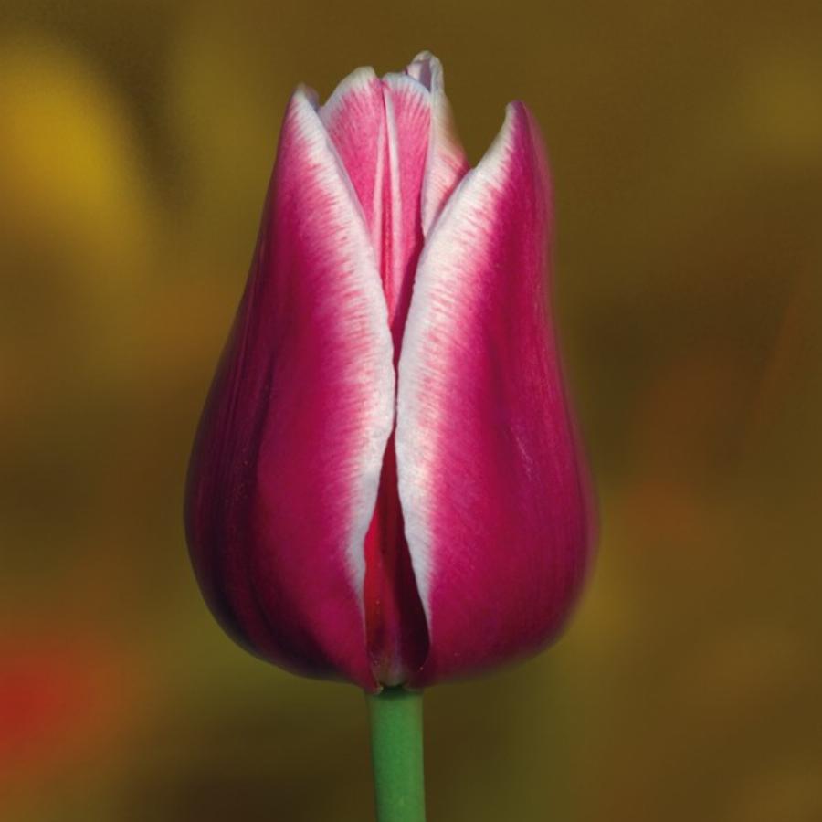 Высокий до 70 см. тюльпан. Цветки крупные лиловые с белой каймой бокаловидные формы.