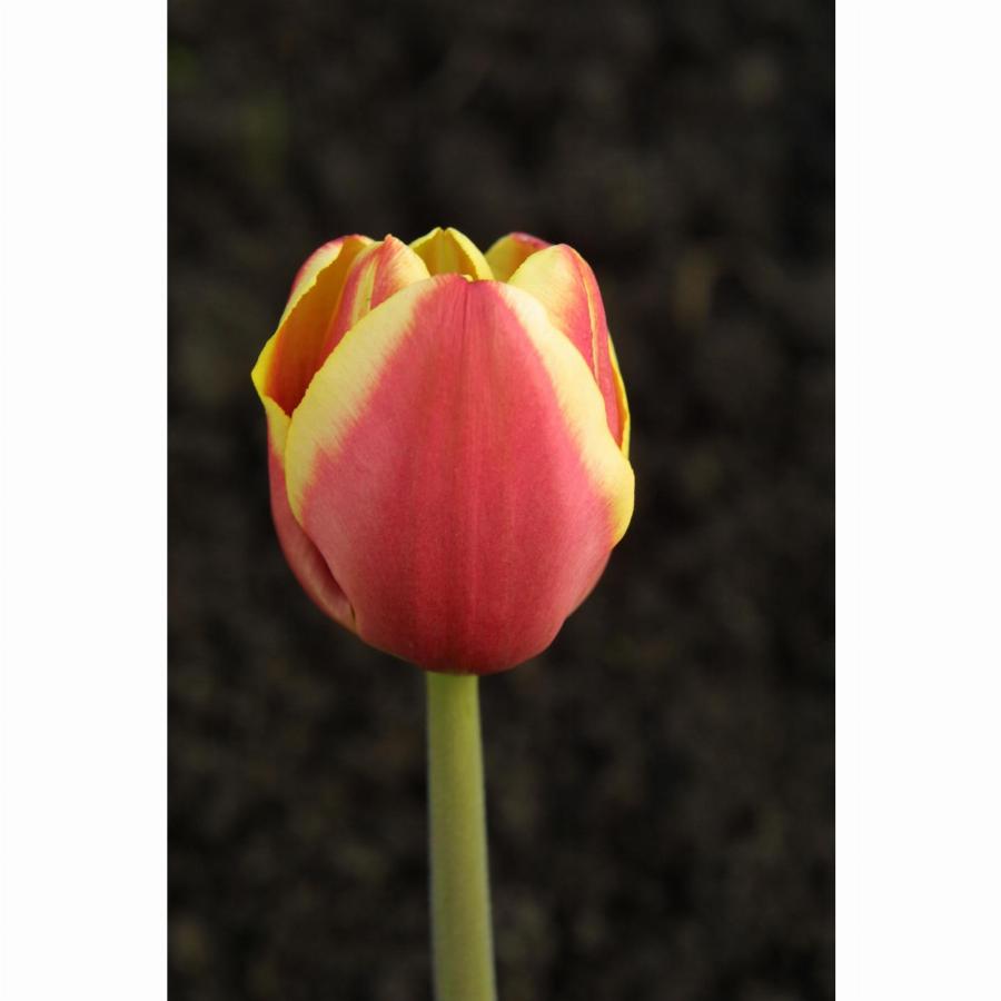 Высокий до 55 см. тюльпан. Цветок красный с фиолетовым оттенком и кремово-желтой, почти белой каймой. Цветонос крупный, стройный и прочный. Пригоден для выгонки с января.