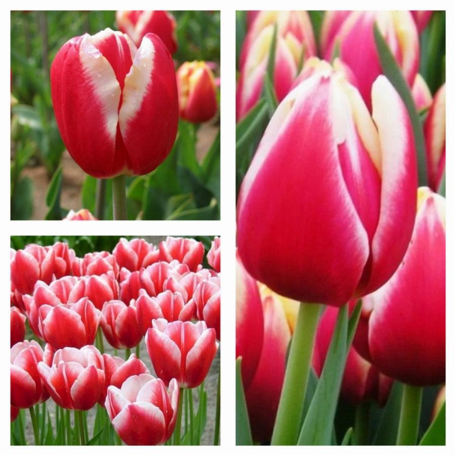 Высокие и сильные растения с крупным, до 7 см, классическим бокаловидным бутоном двуцветной окраски. Бокал крепкий, плотно собранный, в диаметре достигает 6 см, имеет форму конуса с широким основанием. Лепестки преимущественно насыщенно-красные, иногда с легким сиреневым оттенком, очерчены довольно широкой каймой белого или кремово-белого цвета. Высота растения до 55 см, цветонос сильный, не склоняется под весом бутона.