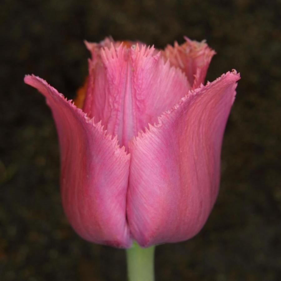 Высокий 60-65 см. тюльпан темно-сиреневого цвета с игольчатой белой бахромой по краю лепестков.