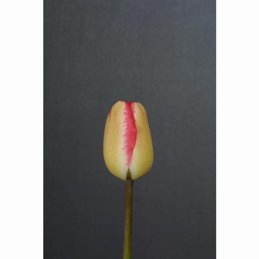 Класс 5. Простые поздние. Цветок кремово-белый с яркими красными краями лепестков, красивой бокаловидной формы, крупный. Цветонос стройный и прочный.