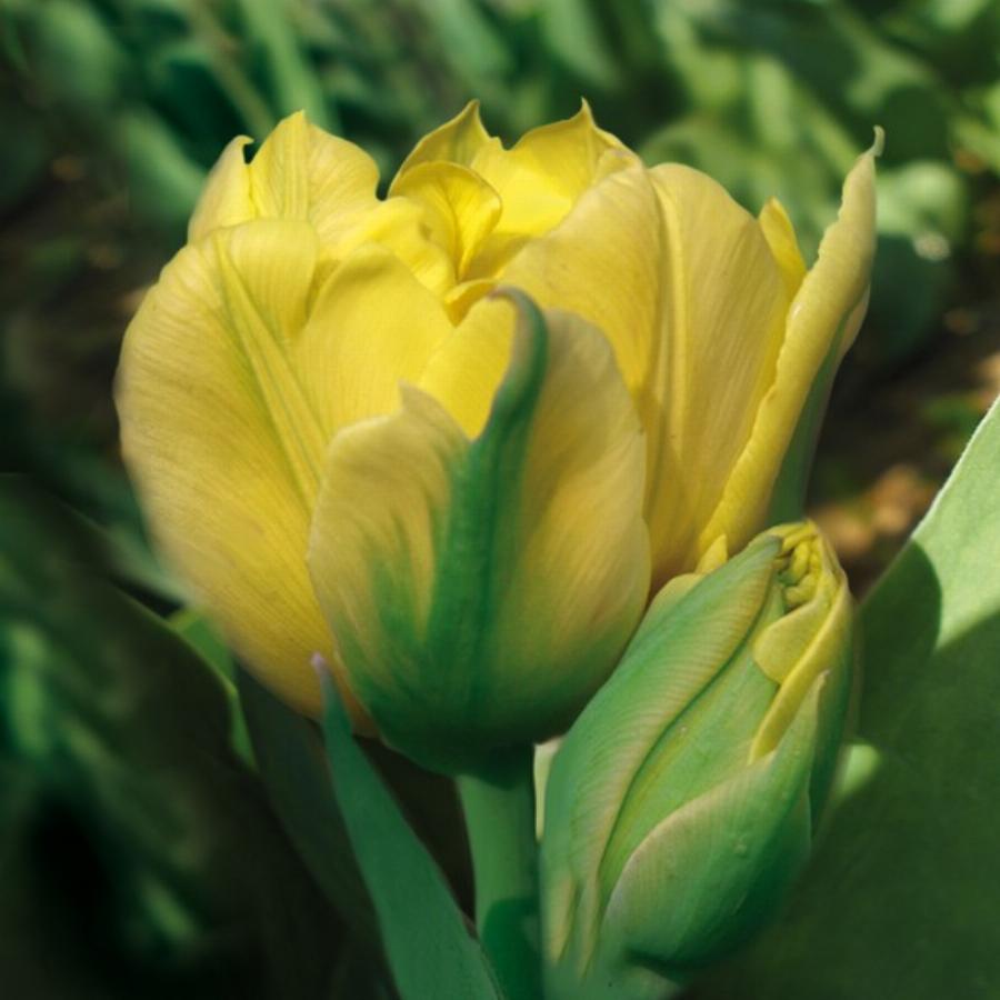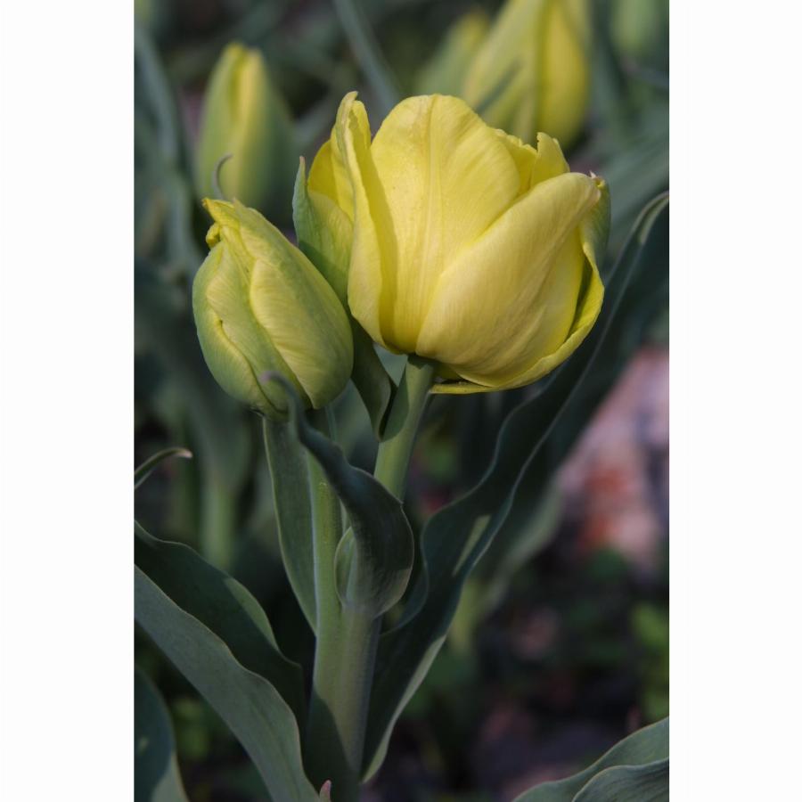 Высотой 40 см. тюльпан. Махровый, крупный, желтого цвета.