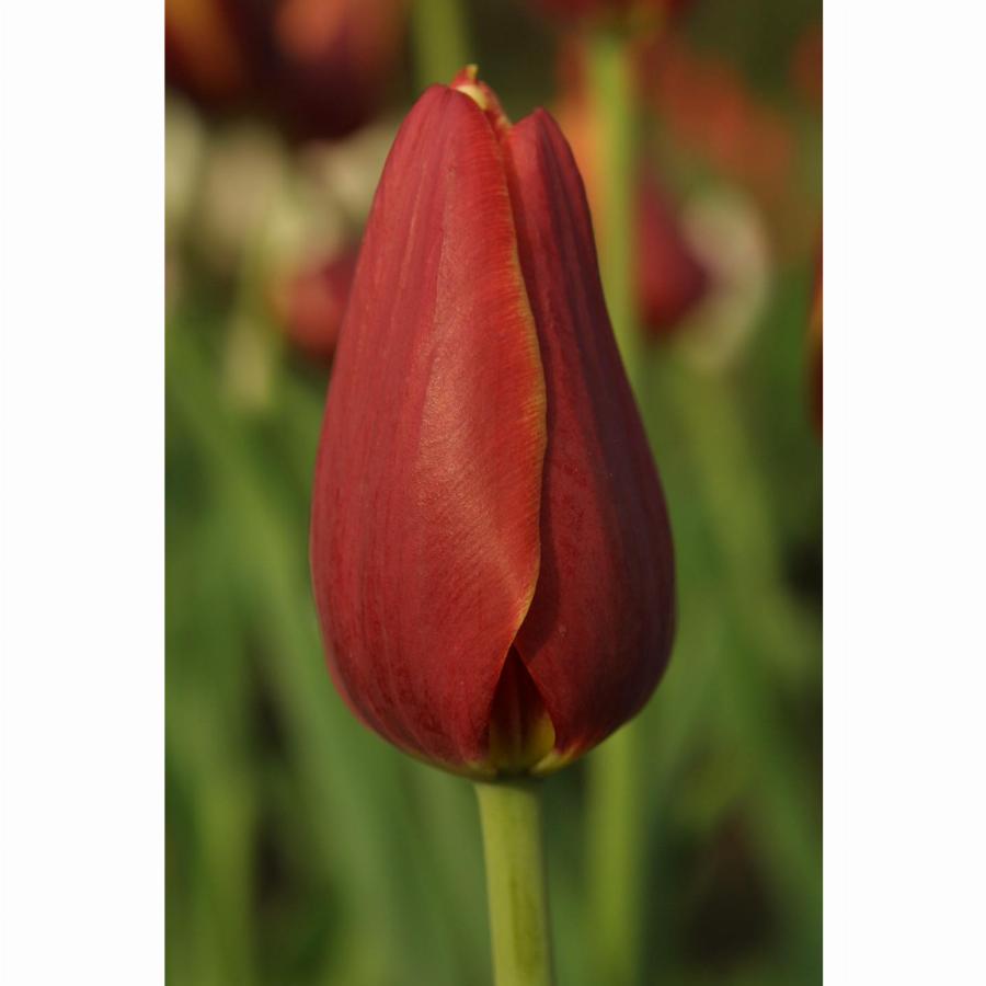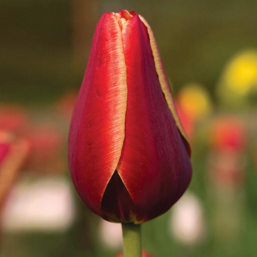 Высотой 60-70 см. тюльпан. Цветок красно-коричневый с желтой каймой, вытянутой формы. Великолепная срезка и зимняя выгонка.
